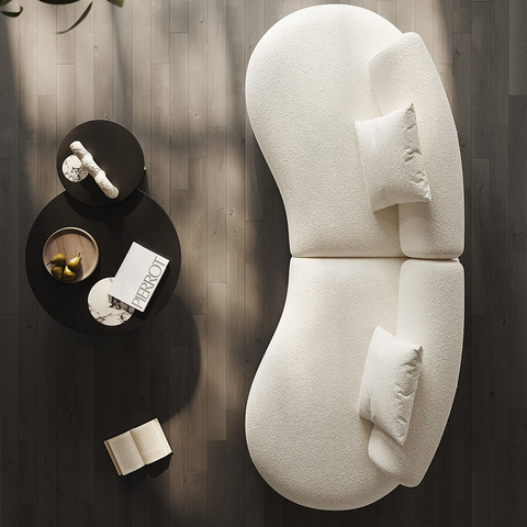 Set di sofà in lana di agnello moderno design moderno italiano spugna riempita curva minimalista per il piccolo appartamento in tessuto da soggiorno
