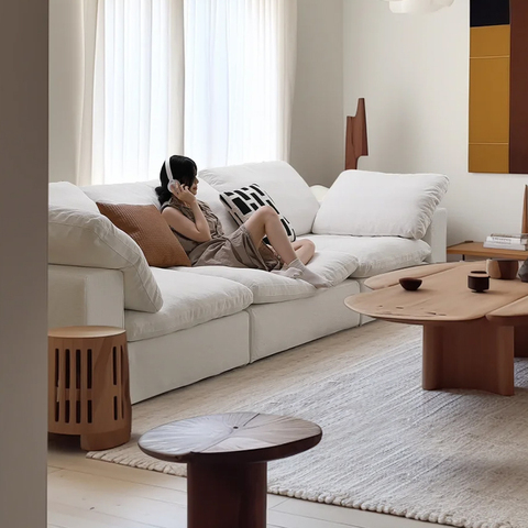 Duzefan White Goose Módulo Combinação Nuvem Creme De Linho Removível Lavável Sofá Secional Set para Hotéis Villas Salas